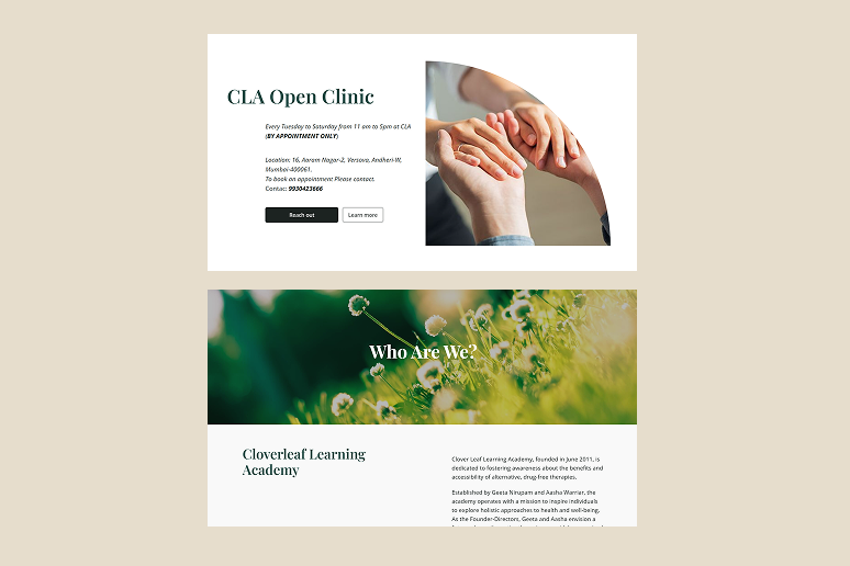 Clover Leaf Learning Academy offers alternative therapies and workshops focused on holistic health and well-being. We designed the website to evoke a peaceful, calming, and therapeutic atmosphere, aligning with the academy’s mission to foster healing and personal growth.