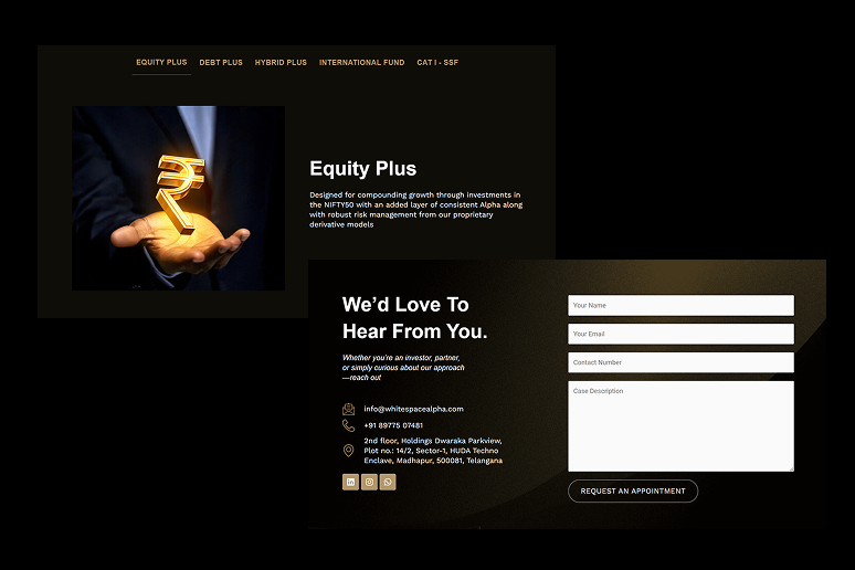 In collaboration, we developed a sleek one-page website for a hedge fund and investment firm, designed to convey a modern, luxurious feel. The layout, typography, and visual hierarchy were crafted to reflect sophistication and trust, aligning with the brand’s high-end financial services.